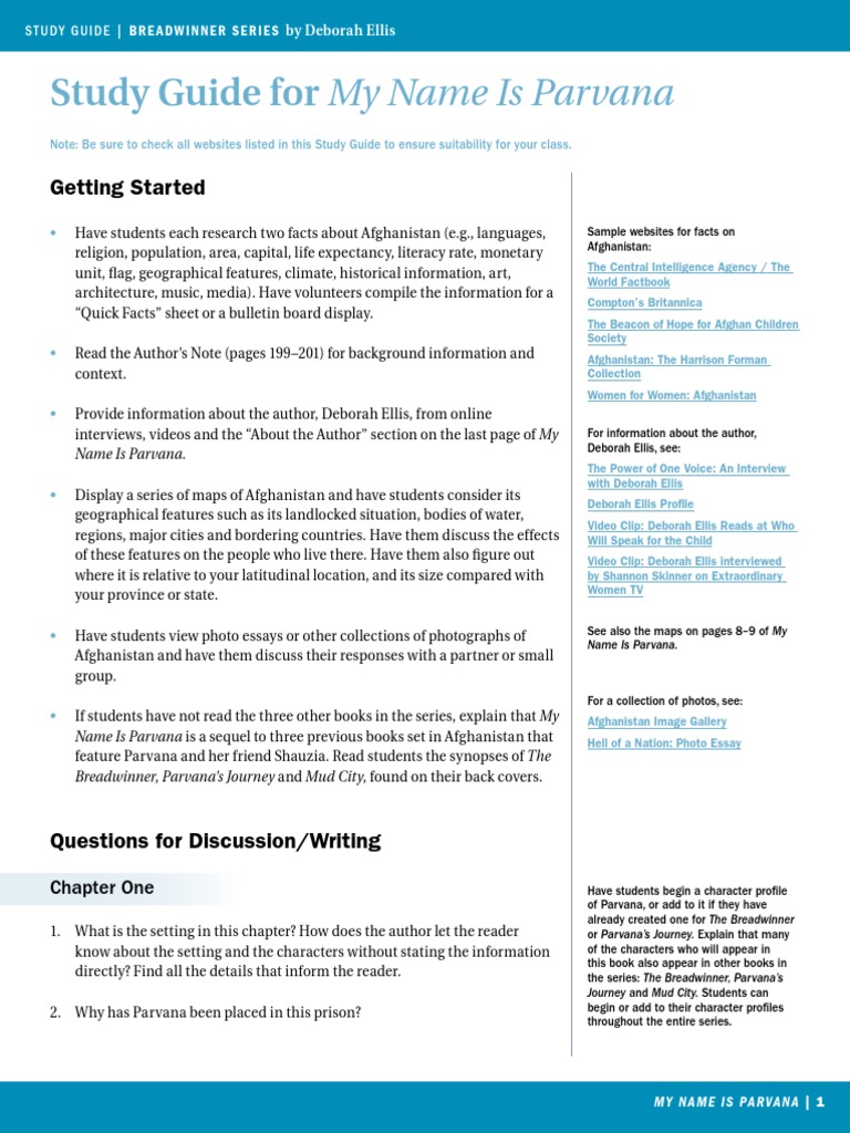 Download Parvana Study Guide Epub Instruction The Breadwinner