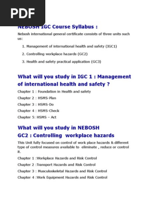 Nebosh Igc International Certificate Safety Health