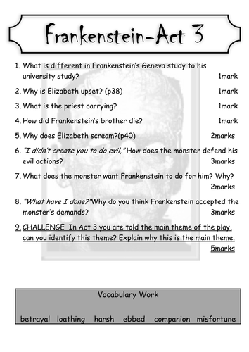 Frankenstein Adapted Worksheets Teaching Resources Tpt