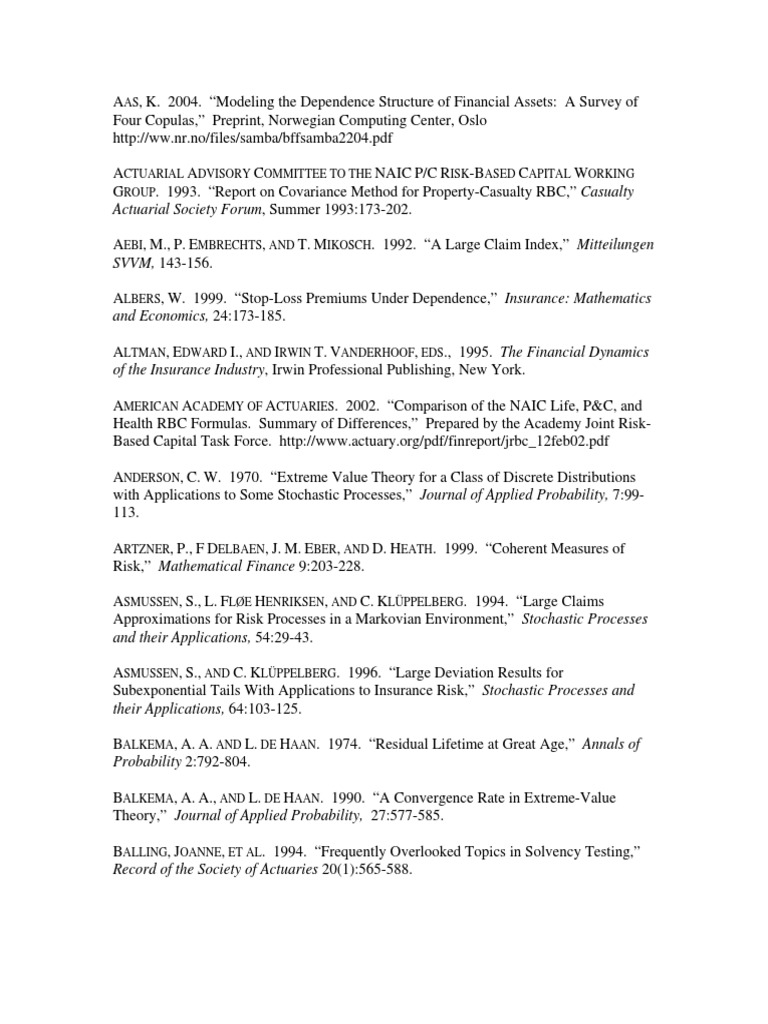 Extremeeventdependencebibliography 5 18 06 Stochastic Process Actuarial Science Free 30 Day Trial Scribd