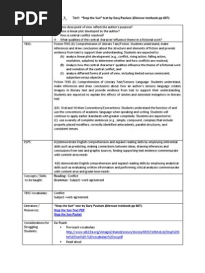 Stop The Sun By Gary Paulsen Study Unit By Arlene Manemann Tpt