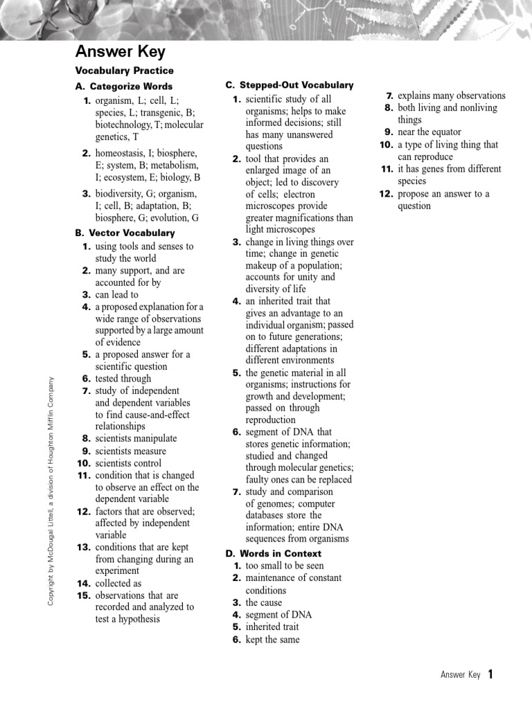 Unit 6 Resource Book Mcdougal Littell Biology Answers Worksheet